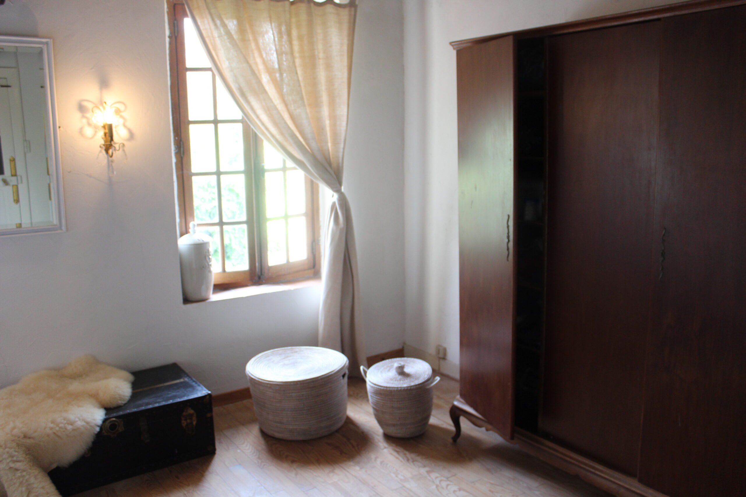 Via de trap vanuit de gezellige, gezamenlijke woonkamer kom je op de eerste verdieping bij Moulin 3. Deze gezellige kamer heeft een heerlijk groot tweepersoonsbed. De badkamer is naast de slaapkamer op de gang en is uitgerust met een ruime inloopdouche, wastafel en toilet.